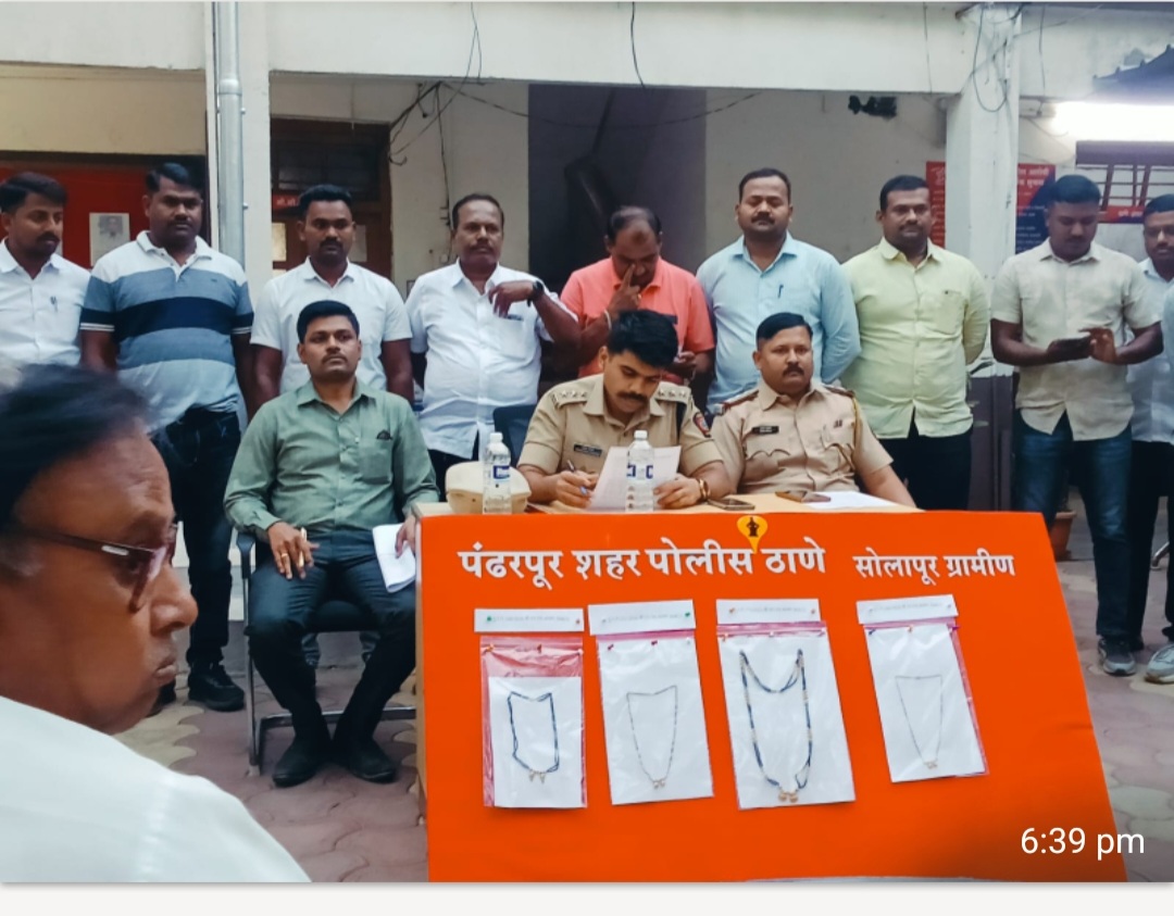 मा.श्री. अतुल कुलकर्णी पोलीस अधिक्षक सोलापुर ग्रामीण, मा.श्री प्रितम यावलकर अप्पर पोलीस अधिक्षक सोलापुर ग्रामीण यांचे सुचनेप्रमाणे सोलापुर जिल्हयातील जबरी चोरीस प्रतिबंध करणेच्या आदेशान्वये मा. श्री. प्रशांत डगळे, सहा पोलीस उपअधिक्षक पंढरपुर विभाग पंढरपुर व मा. श्री. दशरथ वाघमोडे वरिष्ठ पोलीस निरीक्षक पंढरपूर शहर पोलीस ठाणे यांचे मार्गदर्शनाखाली पंढरपुर शहर पोलीस ठाणे गु.र. नं. १३१/२०२६ बी.एन. एस ३०४ (२) प्रमाणे दाखल गुन्हयातील फिर्यादी व तिची आई या दोघी इसबावी येथील विसावा मंदिर येथे दर्शन करून रात्री ०७/३० वा. चे सुमारास घराकडे जात असताना झिप बाय स्प्री हॉटेलजवळ नवशक्ती चौकात आले असता अचानक पाठीमागुन एक काळया रंगाच्या मोटार सायकलवर आलेल्या व हेल्मेट घातलेल्या इसमाने फिर्यादीचे गळयातील सोन्याचे मंगळसुत्र जबरदस्तीने हिस्कावुन चोरून नेले होते. त्या गुन्हयाचा तपास चालू असताना दिनांक २९/०३/२०२६ रोजी पंढरपूर शहर पोलीस ठाणे कडील गुन्हे प्रकटीकरण शाखेतील कर्मचारी पेट्रोलिंग करीत असतांना गोपनीय बातमीदार मार्फत माहिती मिळाली की, एक इसम हा पंढरपूर येथील सरगम चौक येथे एक काळया रंगाचे मोटार सायकलवर हेल्मेट घालुन थांबला आहे अशी माहिती मिळाल्याने बातमीच्या नमुद ठिकाणी जावुन त्याचेकडे विचारपुस करीत असताना तो त्याचेकडील मोटार सायकलवरून पळून जावु लागला त्याचा संशय आल्याने गुन्हे प्रकटीकरण शाखेतील अंमलदार यांनी पाठलाग करून पकडले त्याचेकडे गुन्हयाचे अनुषंगाने चौकशी केली असता त्याने सदर गुन्हयाची कबुली दिल्याने त्यास अटक करून अधिक तपास करता आरोपी नामे १) आण्णा दशरथ लाडे वय. ३४ वर्षे, रा. सुपली ता. पंढरपूर जि. सोलापूर याचेकडुन गुन्हयातील गेला माल १,०३,९६४/- रू. किं. चे १७ ग्रॅम २० मिली वजनाचे सोन्याचे मंगळसुत्र (मिनीगंठण) जु.वा.कि.अं. हे जप्त करण्यात आले आहे व आरोपीनी गुन्हा करताना वापरलेली एक काळया रंगाच्या युनिकॉर्न मोटार सायकल नं. MH-13-EU-9595 ही मोटार सायकल त्यांचेकडे मिळाल्याने तो गुन्हयाचे तपासात जप्त केली असून त्याला अटक केल्यानंतर त्याचे कडे अधिक चौकशी केली असता त्याने पंढरपूर शहर पोलीस ठाणे हद्दीत आणखीन ३ गुन्हे
